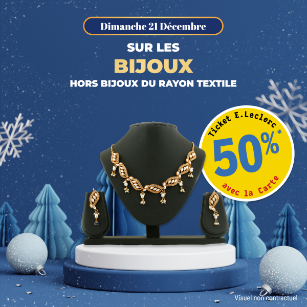 (hors couteaux Deejo, bijoux du rayon textile) Ticket E.Leclerc crédité sur votre carte de fidélité et utilisable dès le lendemain de son obtention pour les porteurs de la carte de fidélité E.Leclerc. Offre non cumulable avec les offres en cours. Voir conditions en magasin.